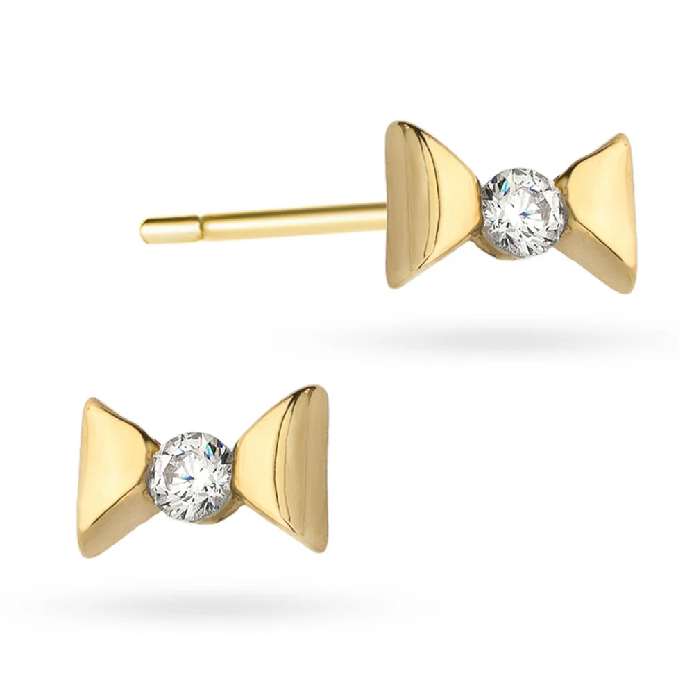 Gold bow earrings with cubic zirconia