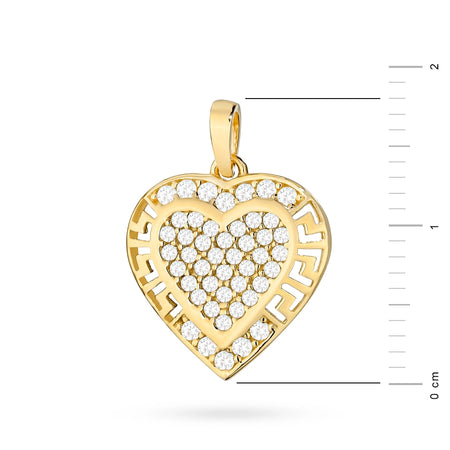 Gold Necklace with Heart Pendant and Cubic Zirconia – Greek Pattern