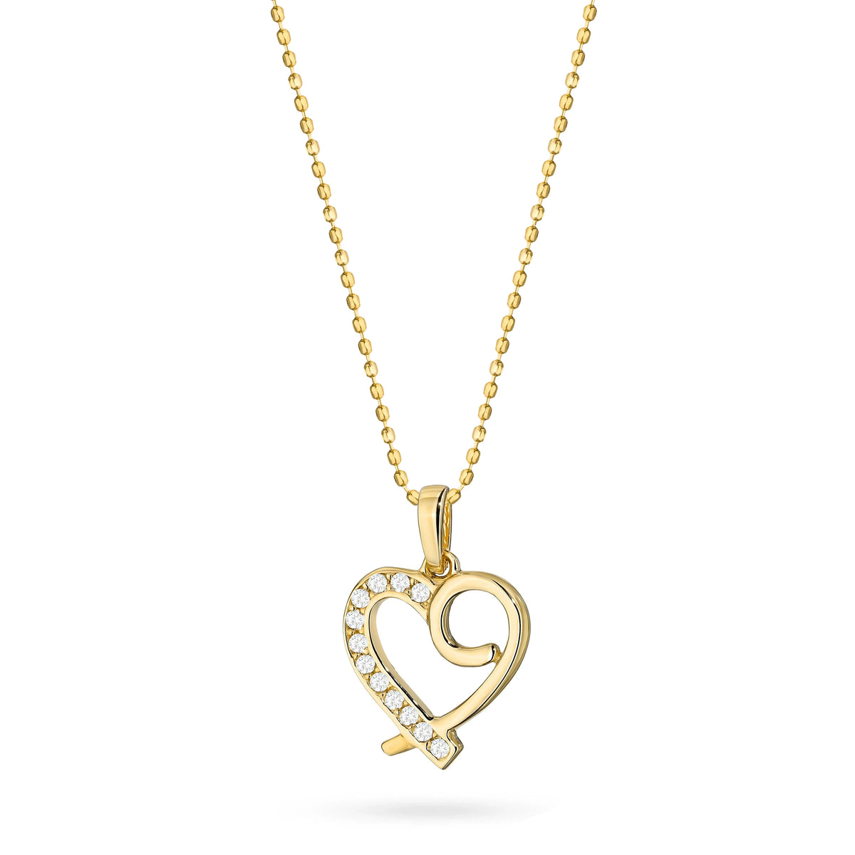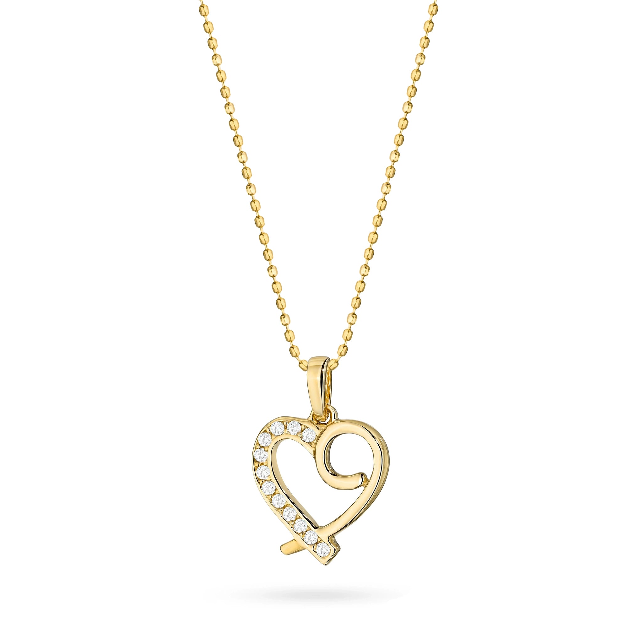 Gold Necklace with Heart Pendant and Cubic Zirconia