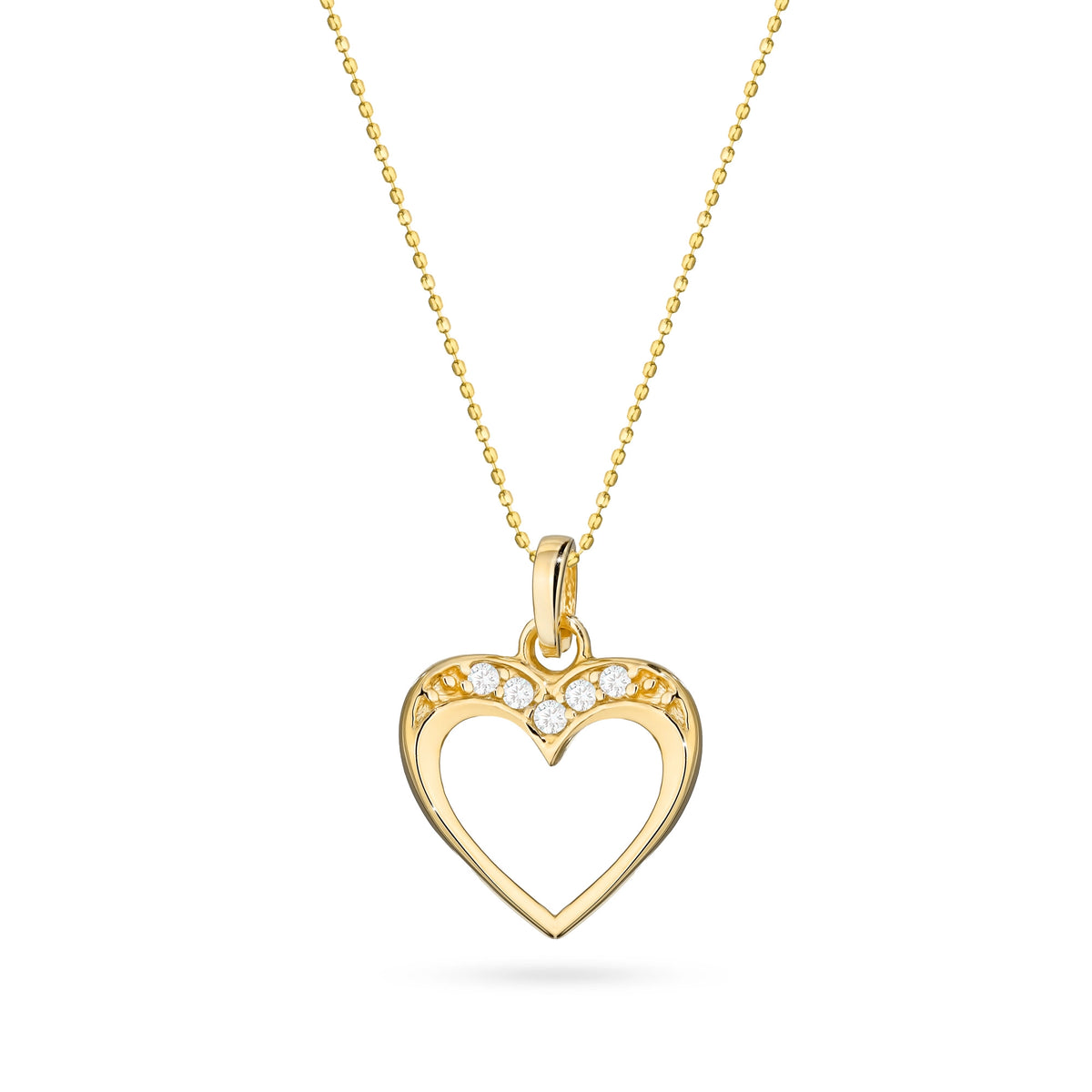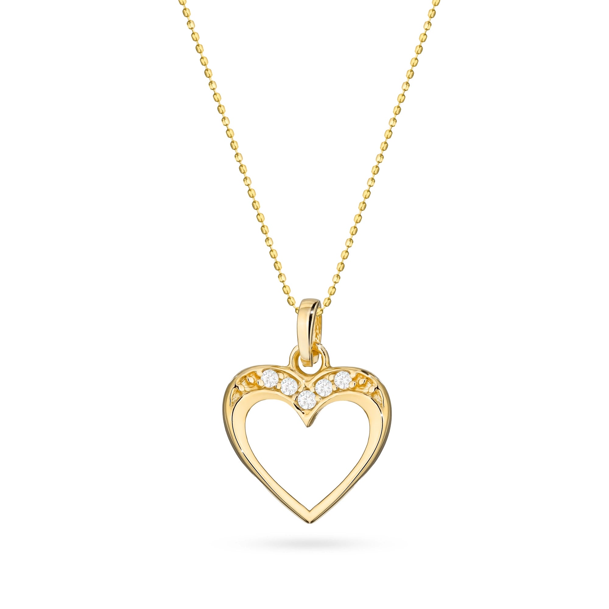 Gold Necklace with Heart Pendant and Cubic Zirconia