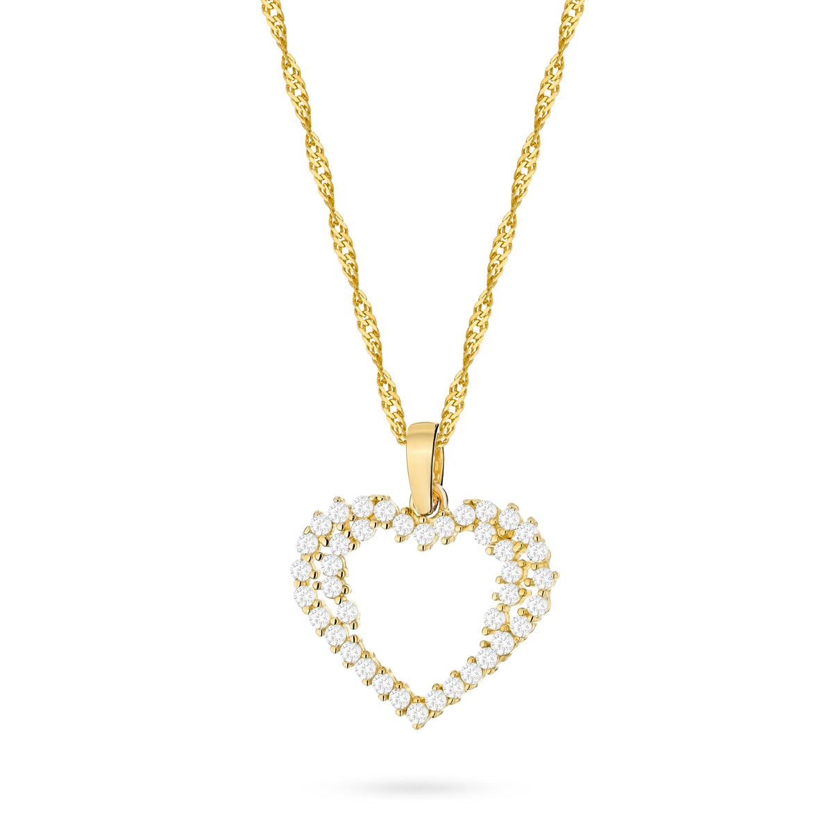 Gold Necklace with Heart Pendant Filled with Cubic Zirconia