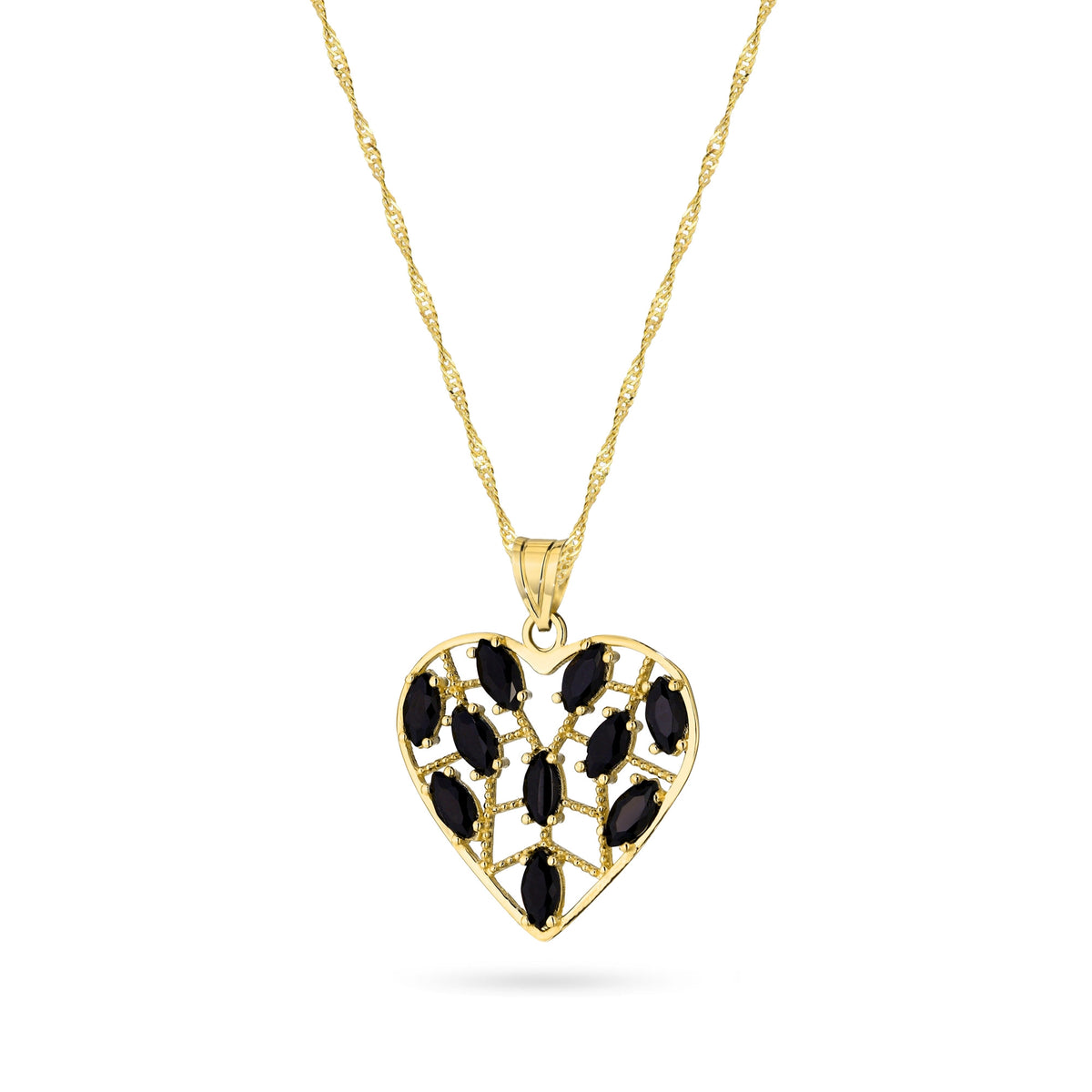 Gold Necklace with Openwork Heart Pendant and Black Cubic Zirconia