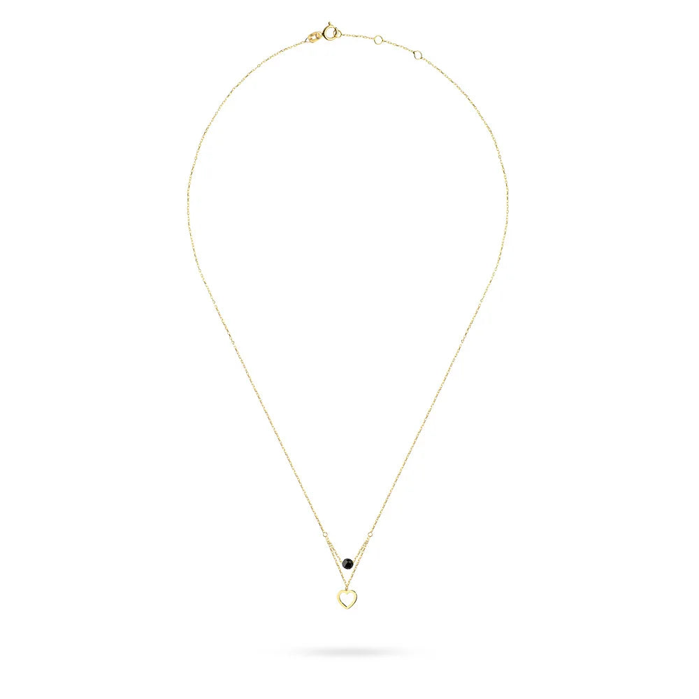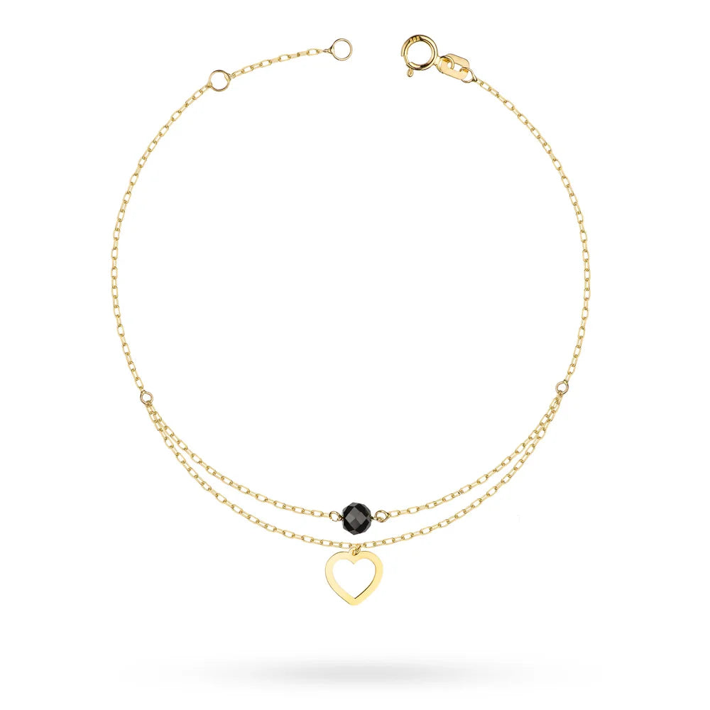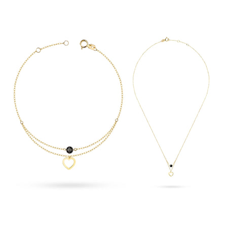 Gold Jewelry Set – Bracelet and Necklace with Double Chain, Bead and Heart