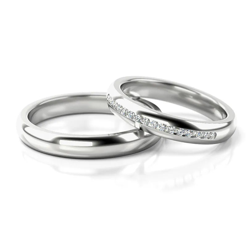White Gold Wedding Bands Rings with Zirconia 3.5mm