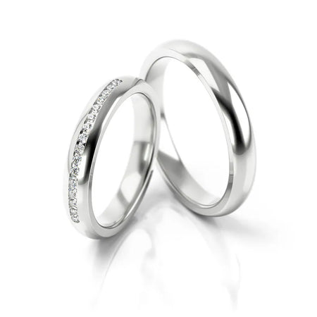 Handcrafted in the Gremari jewelry workshop, unique classic wedding rings made of 14K (585) white gold, are a timeless symbol of everlasting love. The ring, 3.5mm wide and  1,6mm thick, looks beautiful on the hand, is subtle, and goes perfectly with other jewelry pieces, such as bracelets or rings with precious stones, or an engagement ring.