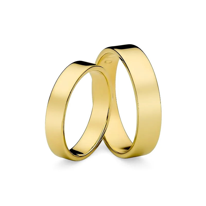 Klasické ploché zlaté snubní prsteny 4 a 5 mm
