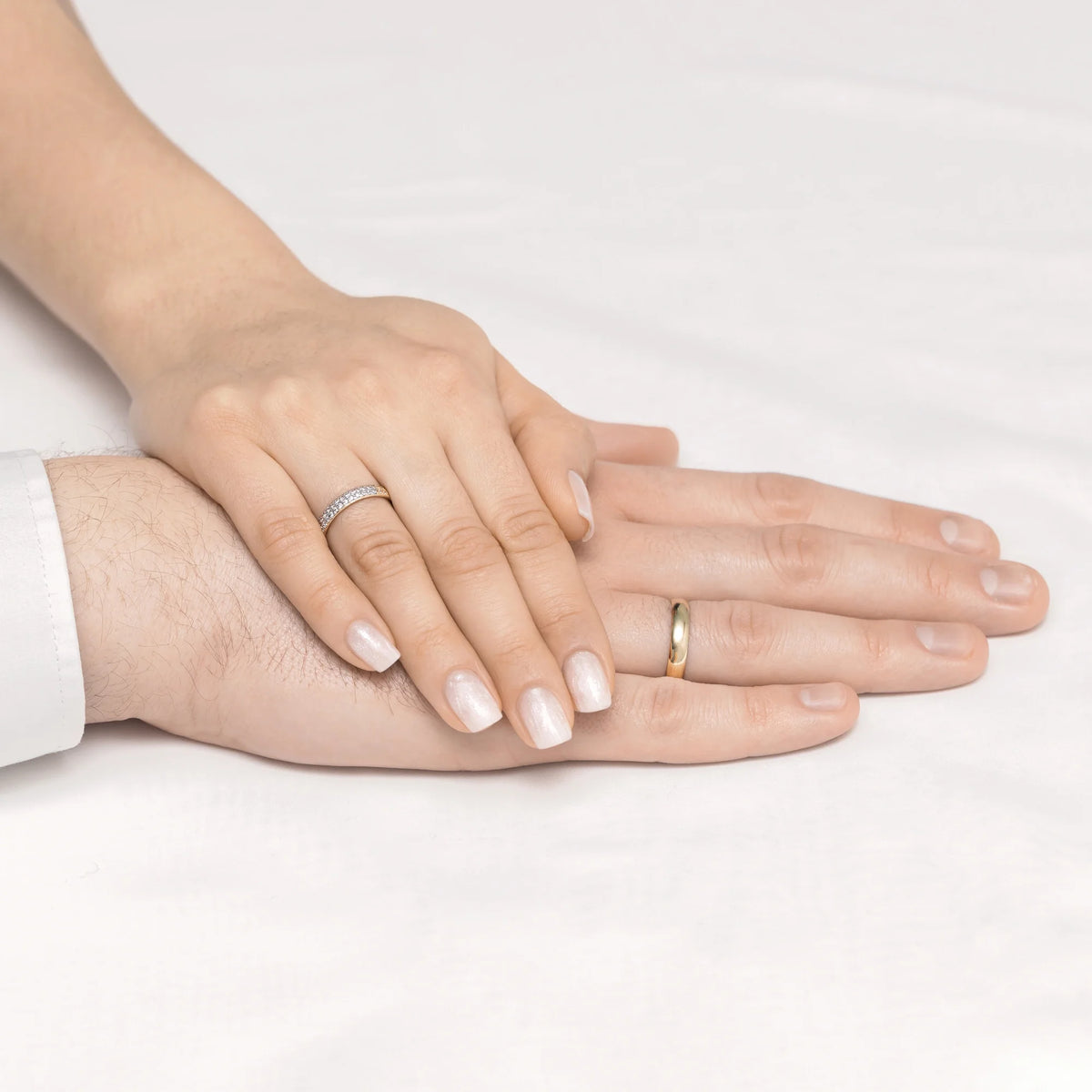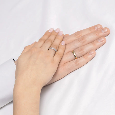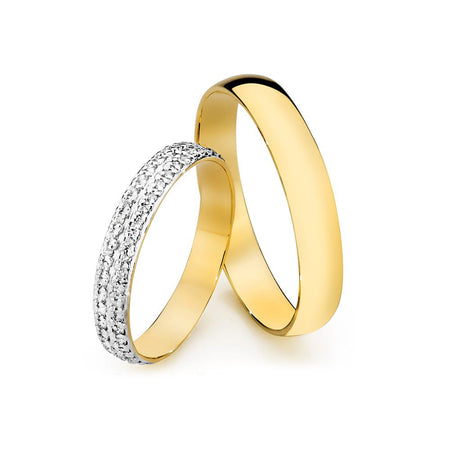 Ručně vyráběné v klenotnické dílně Gremari, jsou jedinečné klasické snubní prsteny z 14K (585) zlata, které představují nadčasový symbol věčné lásky. Prsten, široký 3,5 a 4 mm, vypadá na ruce krásně, je nenápadný a dokonale ladí s ostatními šperky, jako jsou náramky nebo prsteny s drahými kameny, či zásnubní prsten. Dámský prsten je zdoben přírodními diamanty, kameny vzniklými hluboko v zemi během milionů let, symbolizujícími věčnou lásku, která vydrží vše. Autentičnost diamantů potvrzuje certifikát přiložený k vašemu nákupu. Každý pár snubních prstenů je vyroben v naší dílně na zakázku zákazníka. Je možné je dále personalizovat přidáním rytiny s vlastním textem. Snubní prsteny balíme do elegantní šperkovnice, která odpovídá charakteru vaší ceremonie.