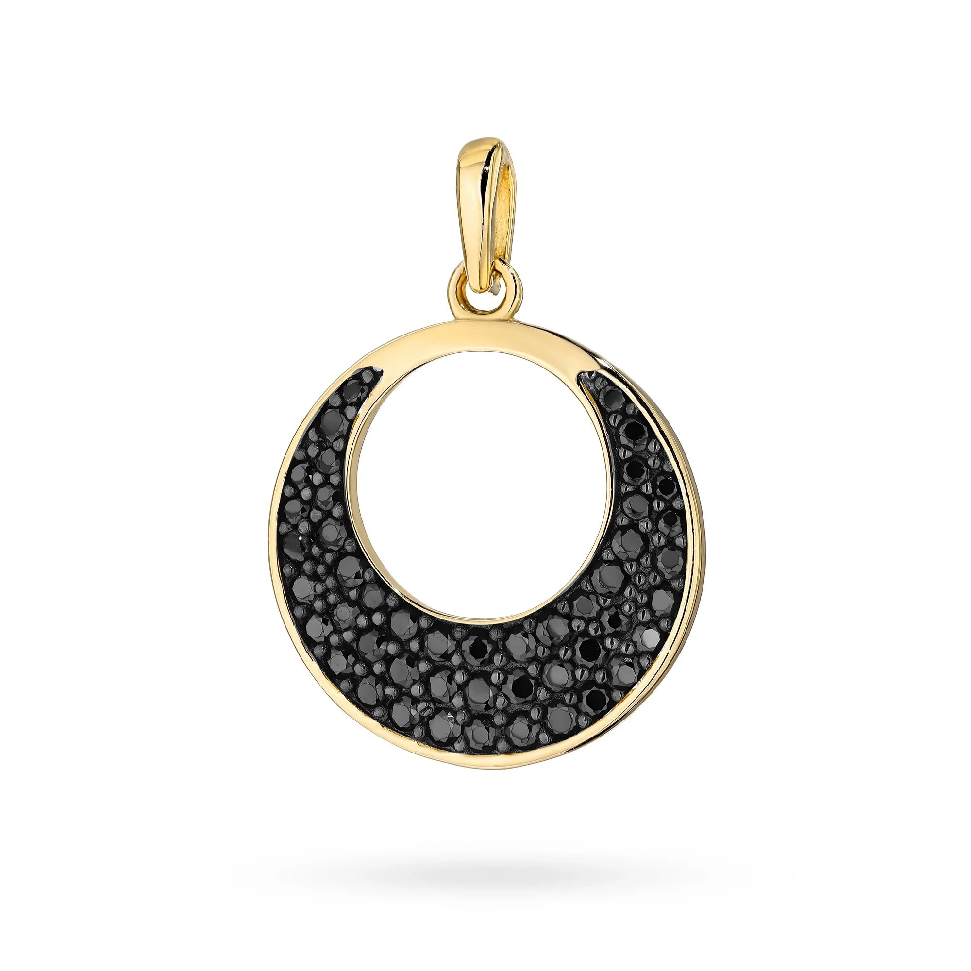 Zlatá sada: přívěsek otevřený kruh s motivem zlaťáckého oka a černou zirkonií