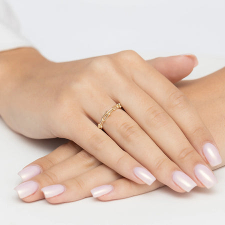 Zlatý prsten s pletenými články a korálky