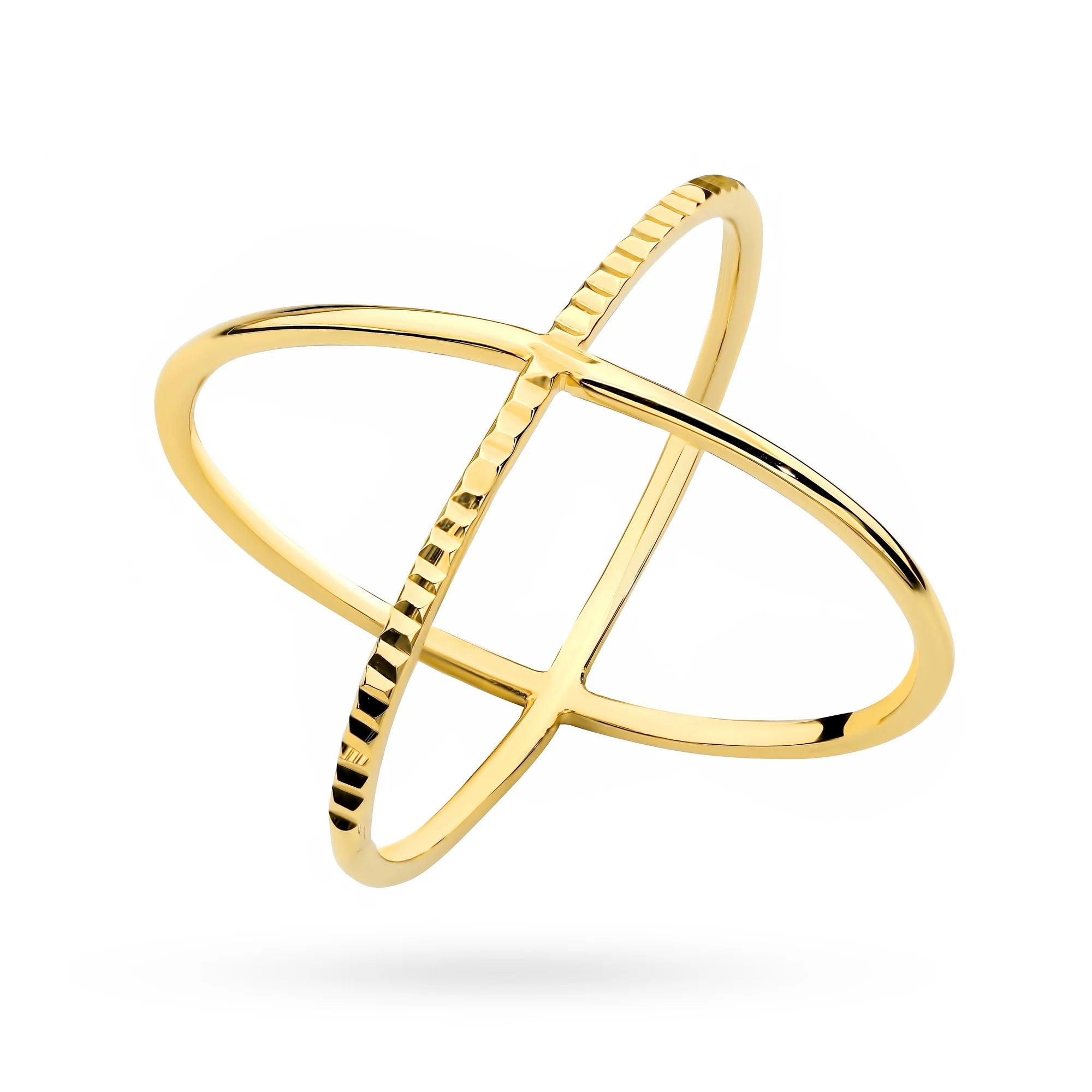 Prsten zlatý s překříženým tvarem X a diamantovým broušením