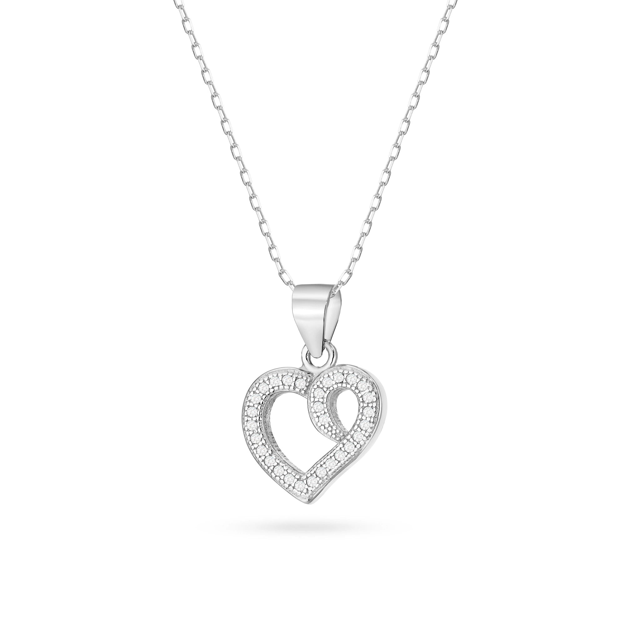 Stříbrný náhrdelník s přívěskem ve tvaru srdce zdobeným pavé a kubickou zirkonií