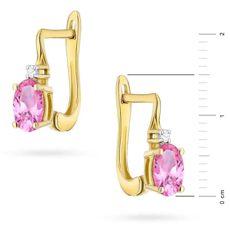 Zlaté náušnice s růžovým topazem 0,50 ct a diamanty