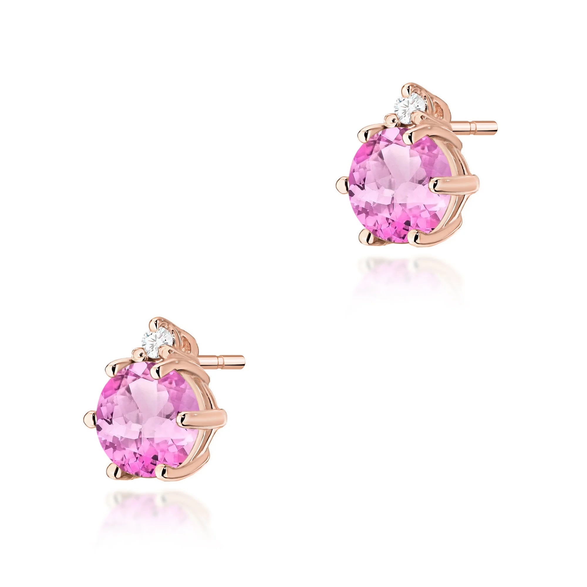Zlaté náušnice s růžovými topazy 0,60 ct a diamanty 0,029 ct