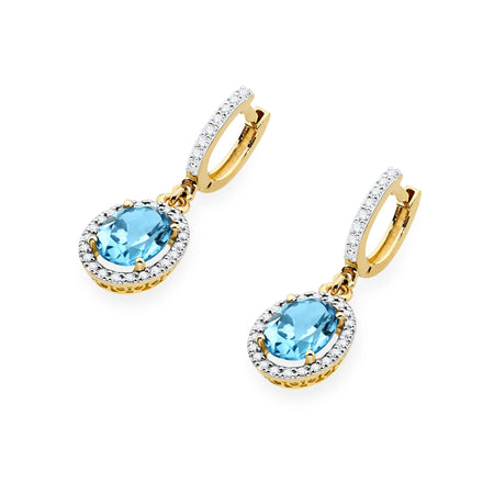 Zlaté náušnice s topazy 1,70 ct a diamanty 0,36 ct