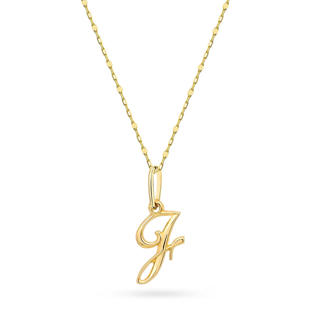 Zlatý náhrdelník s písmenem J na řetízku s diamantovým řezem a kotvou