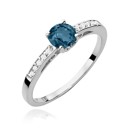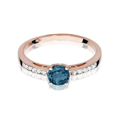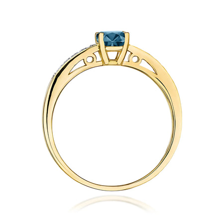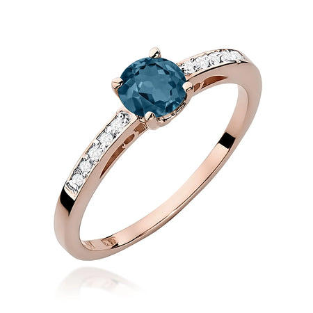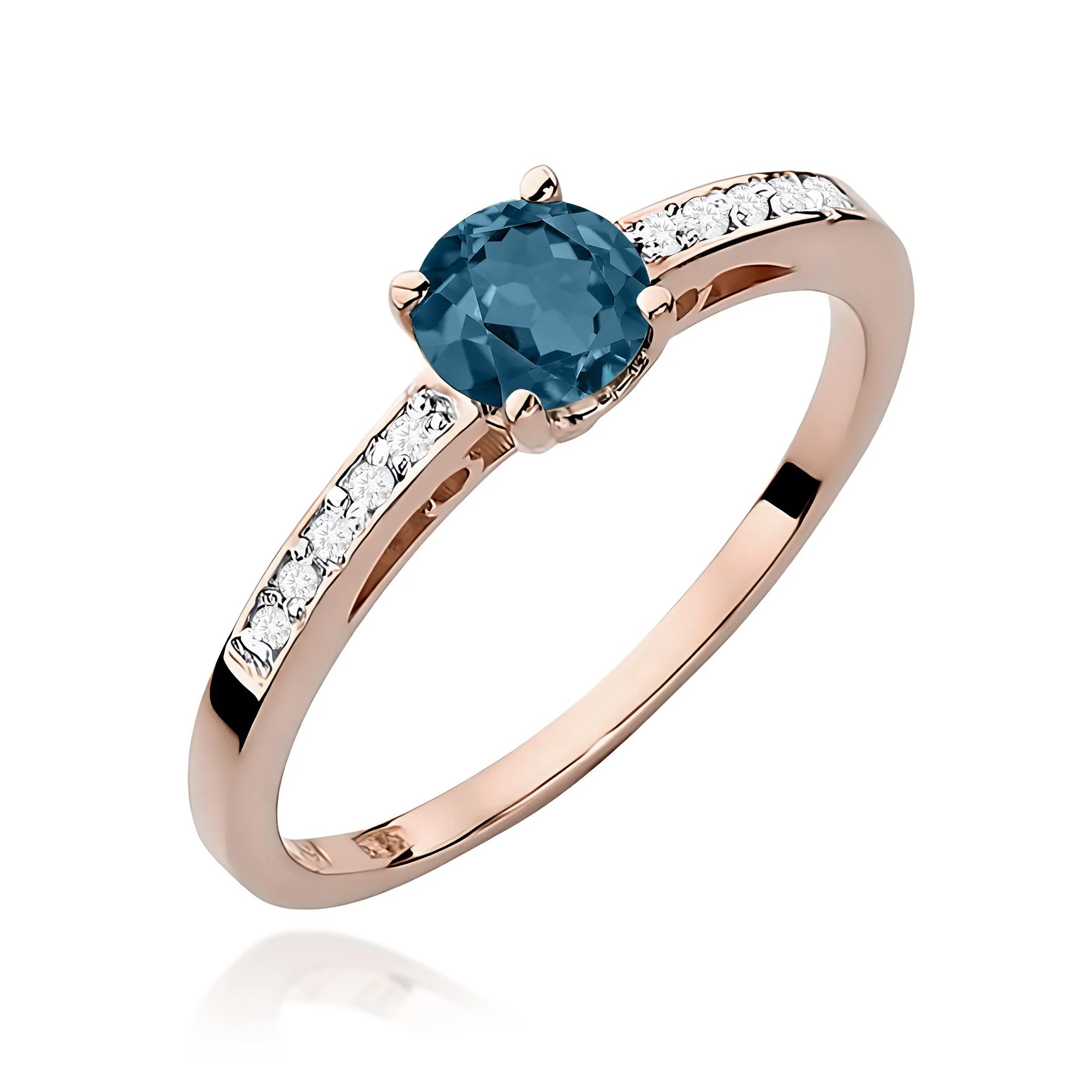 Zlatý prsten s topazem London Blue a diamanty o celkové hmotnosti 0,05 ct