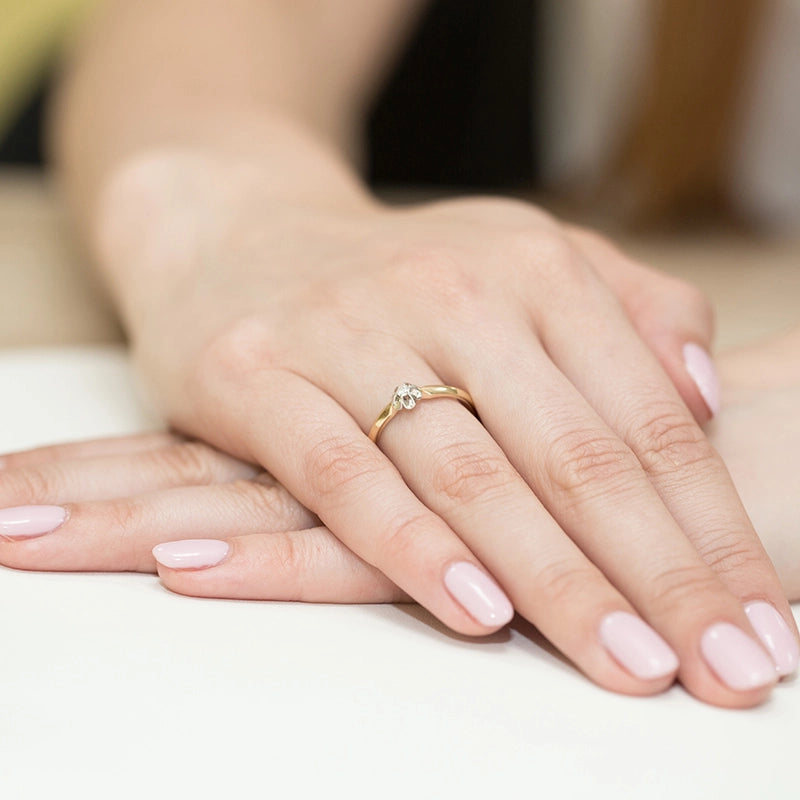Handcrafted in the traditional Gremari jewelry workshop, this unique ring is made of 14K (585/1000) gold decorated with zirconia, combines classic elegance with modern design. Zirconia stones are created in laboratory conditions, and their high hardness and excellent optical properties make them one of the best diamond imitations available on the jewellery market. Their extraordinary ability to refract light makes them sparkle spectacularly with every movement of the hand.