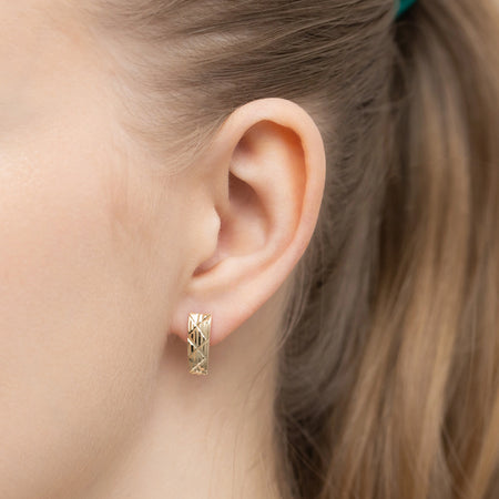 Gold Earrings with English Clasp Rectangular
