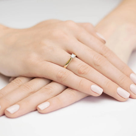Gold Ring with Lab-grown diamonds Handcrafted in the traditional Gremari jewelry workshop, this gold ring with 0.25ct lab-diamond and sideline 10 lab-grown diamonds0.05ct, embodies timeless beauty and masterful artistry. Lab-grown diamonds are created in precisely controlled environments that accurately replicate the natural process of diamond formation deep within the Earth. They are real, pure carbon crystals with the exact same structure as those that form over millions of years. These diamonds have identical optical and chemical properties because they are made of the same material. The difference? They are created faster, without the need for mining, and with our planet??s future in mind.Set in 14K gold with a 585 hallmark, the gemstones combine elegance, subtlety, and durability. The ring is available in three color options: yellow gold, white gold, and rose goldsimply choose your preferred variant above.A golden ring is the perfect choice for an engagement, symbolizing love, devotion, and an everlasting bond. It also makes a wonderful and elegant gift for anniversaries, birthdays, Christmas, and other significant occasions.