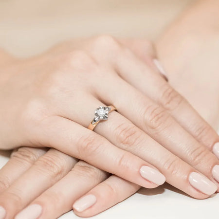 Handcrafted in the traditional Gremari jewelry workshop, this gold engagement ring with a 0.25ct lab-grown diamond embodies timeless beauty and masterful artistry.