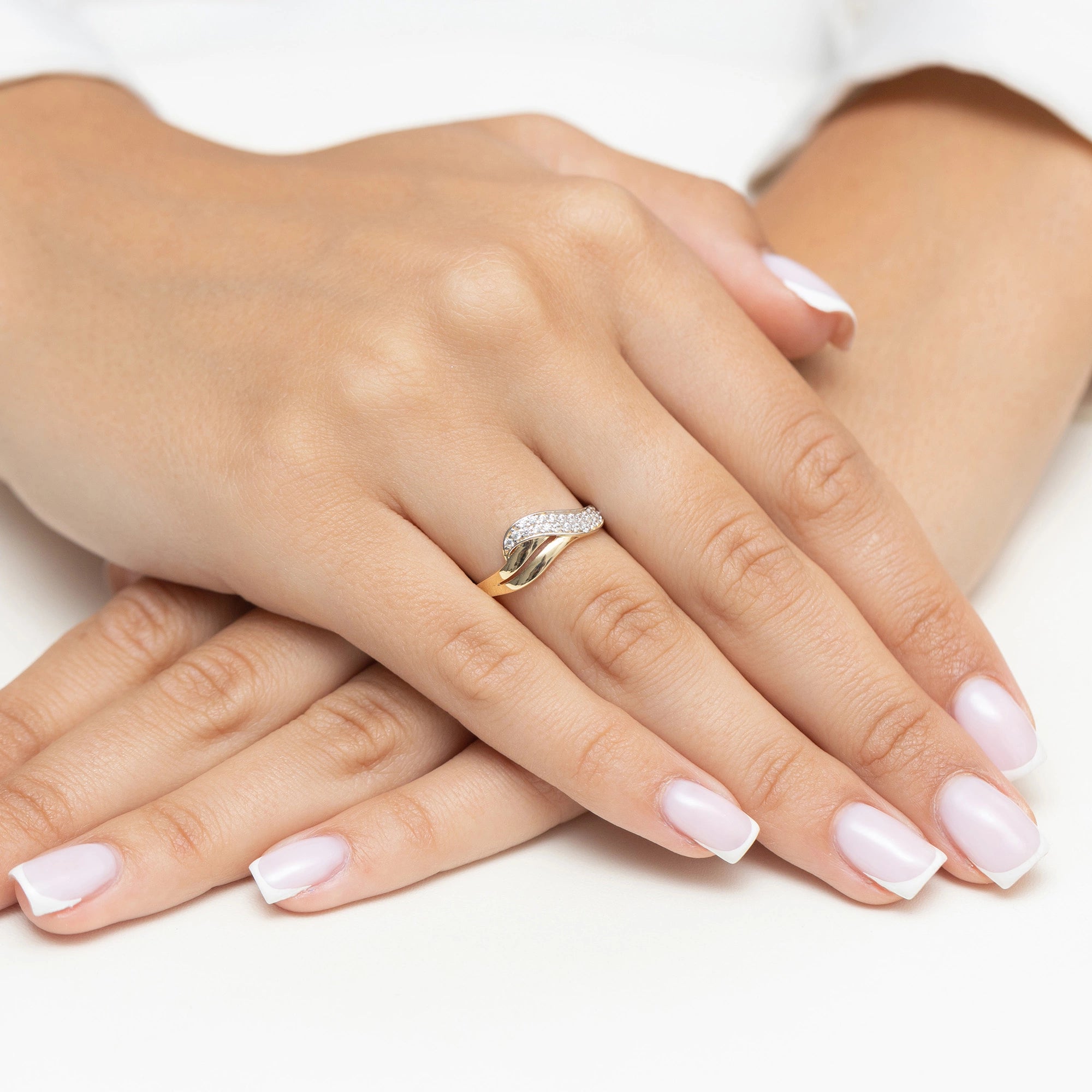 Gold Ring with Zirconia Waves Handcrafted in the traditional Gremari jewelry workshop, this gold ring set in 14K gold with a 585 hallmark is a charming, delicate accessory that emphasises the beauty of your hands. The subtle design makes this gold ring a perfect match for other jewellery, such as diamond rings and gold bracelets. A gold ring is the essence of elegance and class. It is a versatile accessory that you can wear every day and on special occasions. Made of the highest quality gold, it impresses with its timeless shine and durability. It is the perfect way to emphasize your style and add a touch of luxury to any outfit.Zirconia stones are created in laboratory conditions, and their high hardness and excellent optical properties make them one of the best diamond imitations available on the jewellery market. Their extraordinary ability to refract light makes them sparkle spectacularly with every movement. Gremari gold ring is packaged in an elegant box, which is perfect for giving as a gift. It comes with a jewelry tag showing the fineness, weight, and symbol of the metal ” even if it's a last-minute gift, you're covered!