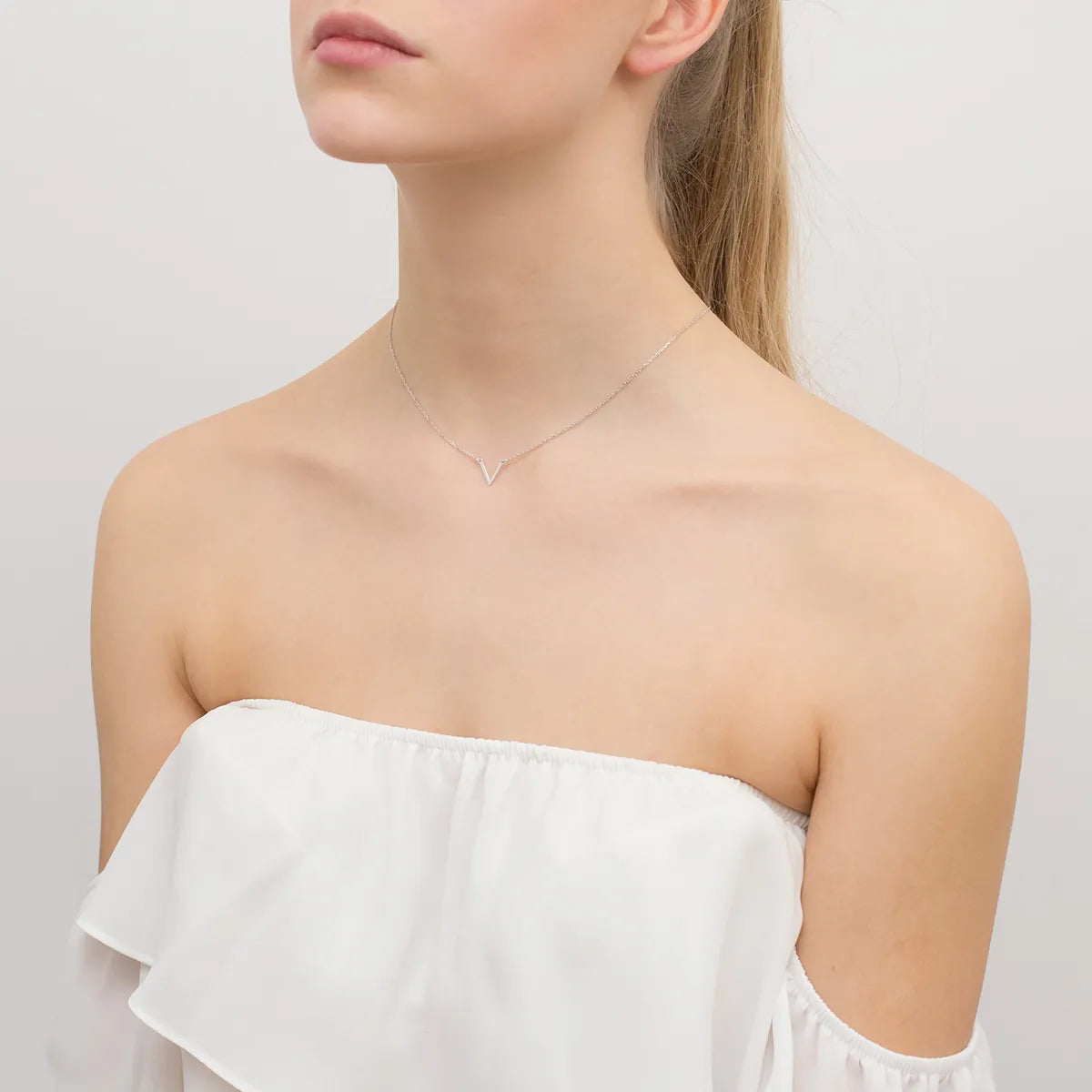 Silver Necklace Letter V