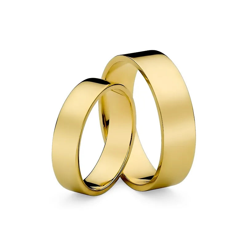 Klasické ploché zlaté svatební prsteny 5 a 6mm
