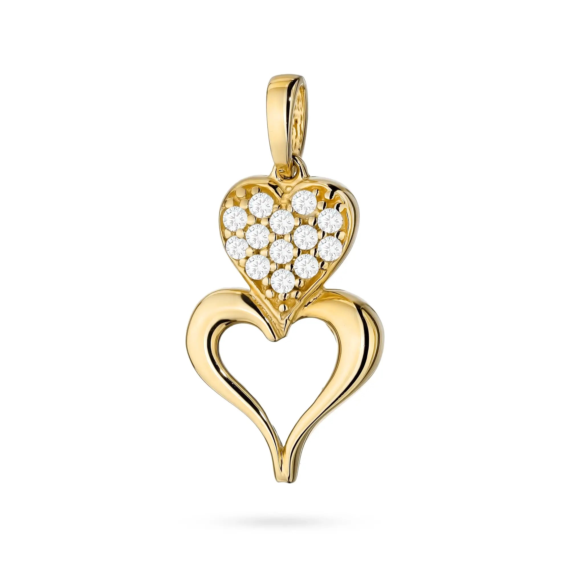 Zlatý přívěsek se zirkony Dvě spojená srdce