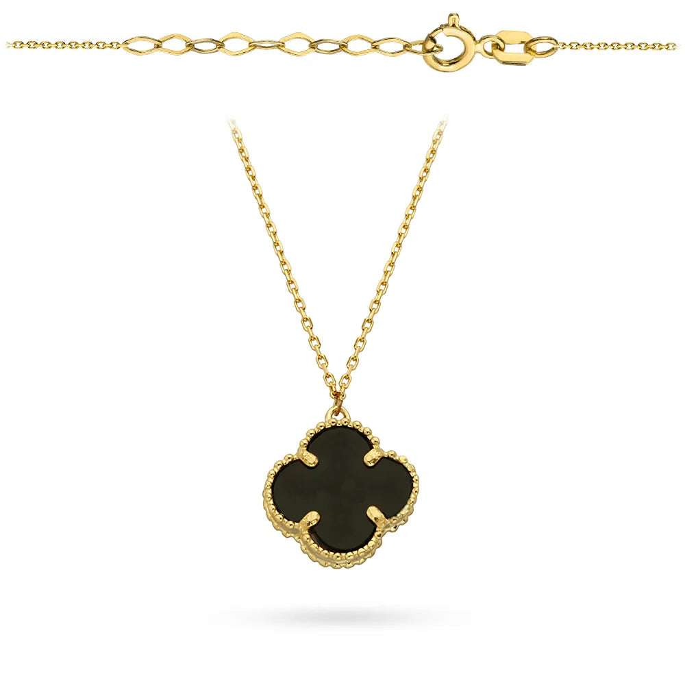 Zlatý náhrdelník s černým čtyřlístkem z umělého onyxu