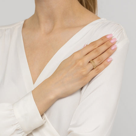 Zlatý prsten Oválný vzor Ručně vyrobený v tradiční šperkařské dílně Gremari, tento zlatý prsten z 14karátového zlata s puncem 585 je okouzlující, jemný doplněk, který zdůrazňuje krásu vašich rukou. Jemný design činí tento zlatý prsten dokonalým doplňkem k dalším šperkům, jako jsou diamantové prsteny a zlaté náramky. Zlatý prsten je podstatou elegance a třídy. Je to univerzální doplněk, který můžete nosit každý den i při zvláštních příležitostech. Vyrobený z nejkvalitnějšího zlata, zaujme svým nadčasovým leskem a odolností. Je to dokonalý způsob, jak zdůraznit svůj styl a dodat každému outfitu nádech luxusu. Zlatý prsten Gremari je zabalen v elegantní krabičce, která je ideální jako dárek. Součástí je i visačka se značkou ryzosti, hmotnosti a symbolem kovu – i když je to dárek na poslední chvíli, máte to vyřešené!