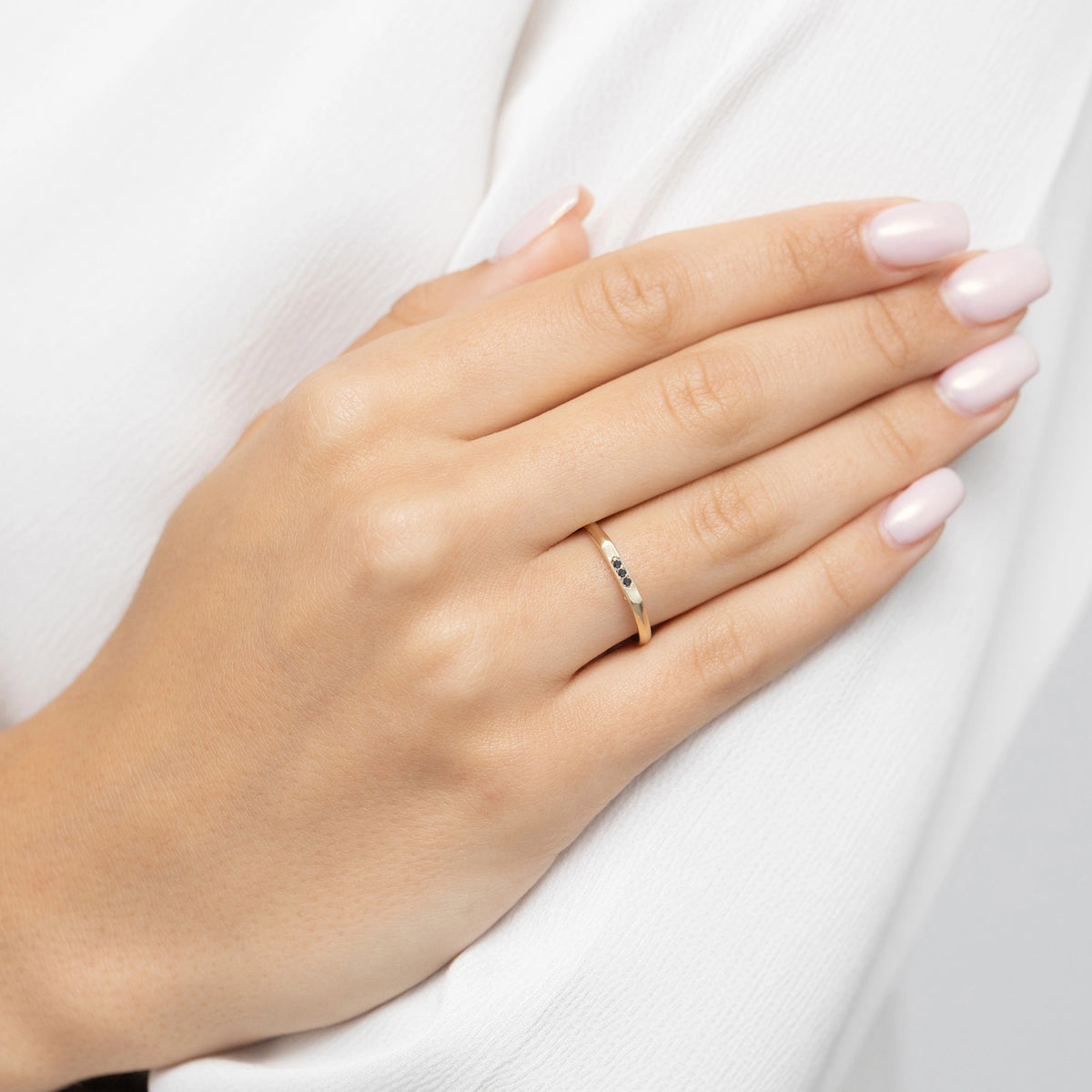 Zlatý prsten s černými diamanty 0,015 ct Ručně vyrobený v tradiční šperkařské dílně Gremari, tento zlatý prsten s černými diamanty o celkové hmotnosti 0,015 ct představuje nadčasovou krásu a řemeslnou zručnost. Osazený v 14karátovém zlatě s puncem 585, tento drahokam kombinuje eleganci, jemnost a odolnost. Tento prsten je ideální volbou pro zásnuby, symbolizující lásku, oddanost a věčné pouto. Je také skvělým a elegantním dárkem k výročí, narozeninám, Vánocům a dalším významným příležitostem.