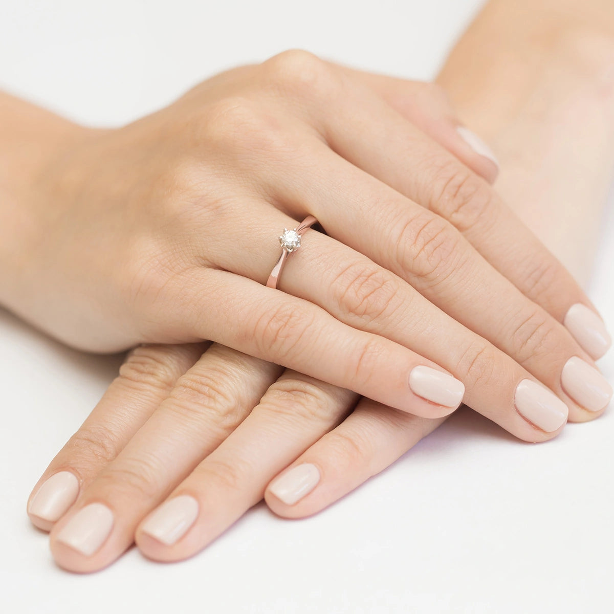 Autentičnost diamantu potvrzuje certifikát přiložený k vašemu nákupu. Tento drahokam, zasazený do 14karátového zlata s puncem 585, kombinuje eleganci, jemnost a odolnost. Můžete si vybrat ze tří barevných variant: žluté, bílé a růžové zlato – jednoduše vyberte preferovanou variantu výše.