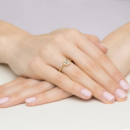 Zlatý prsten s 0,14ct černými diamanty Ručně vyrobený v tradiční dílně šperků Gremari, tento prsten ze 14K zlata osazený 5 černými diamanty a 4 diamanty s celkovou hmotností 0,14ct představuje nadčasovou krásu a mistrovské řemeslo. Osazený ve 14K zlatě s puncem 585, drahokamy spojují eleganci, jemnost a odolnost. Prsten je k dispozici ve třech barevných variantách: žluté zlato, bílé zlato a růžové zlato – jednoduše si vyberte preferovanou variantu výše.