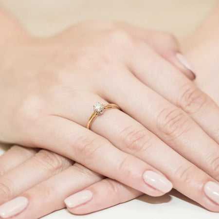 Ručně vyráběný v tradičním šperkařském atelieru Gremari, tento zlatý zasnübící prsten s briliantem o hmotnosti 0,15 ct zosobňuje nadčasovou krásu a mistrovské řemeslo. Korunka drží přírodný diamant, kámen vzniklý hluboko v zemském nitru po miliony let, symbolizující většnou lásku, která přežije vše.