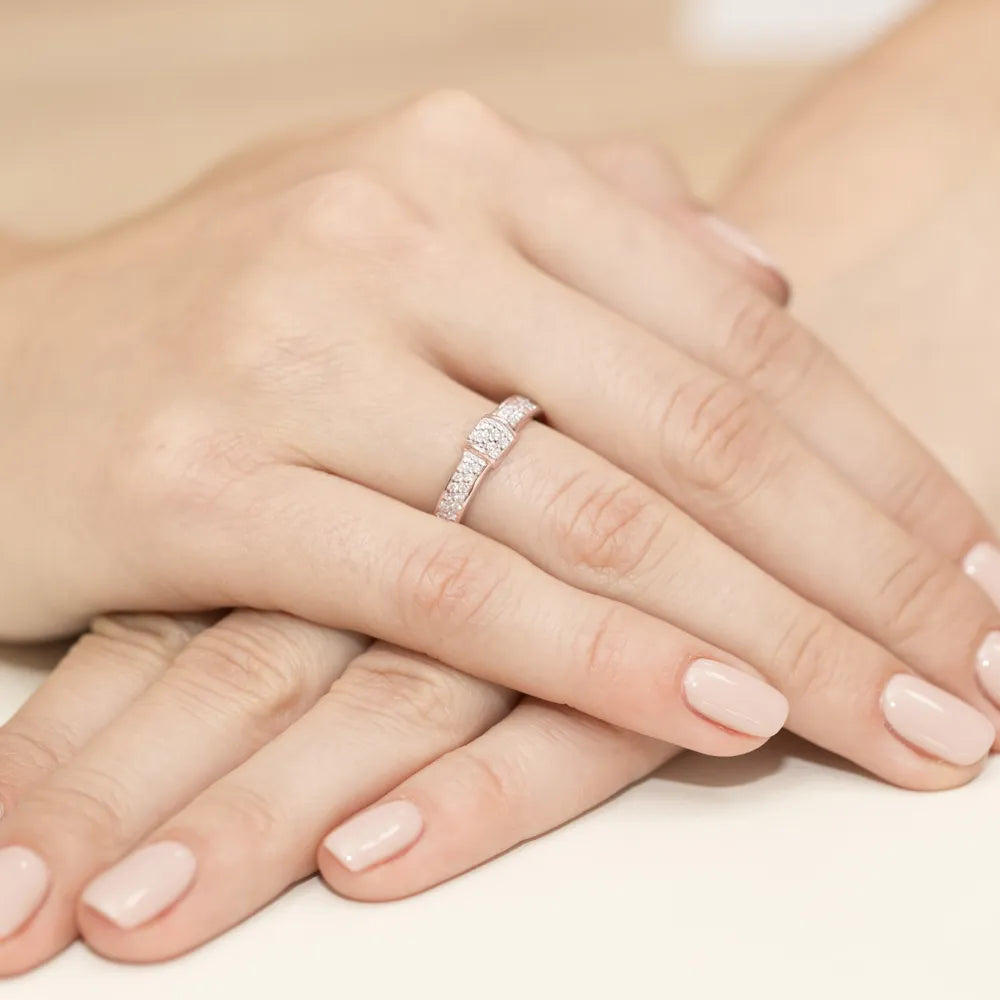 Prsten je zabalen v elegantní černé krabičce, papíru a dárkové tašce. Přikládáme certifikát a visačku potvrzující pravost produktu. Je připravený k darování vaší milované osobě!