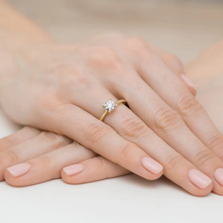 Zlatý prsten s diamantem Ručně vyrobený v tradiční šperkařské dílně Gremari, tento 14karátový zlatý prsten s diamantem o váze 0,20 ct představuje nadčasovou krásu a mistrovské řemeslo. Osazený v 14karátovém zlatě s puncem 585, drahokamy spojují eleganci, jemnost a odolnost. Prsten je k dispozici ve třech barevných variantách: žluté zlato, bílé zlato a růžové zlato – jednoduše si vyberte preferovanou variantu výše.