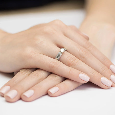 V Gremari chápeme, že výběr velikosti prstenu není snadný úkol, zvláště pokud plánujete překvapení. Pro vaše pohodlí nabízíme výjimečnou doplňkovou službu jednorázové bezplatné úpravy velikosti tohoto prstenu až o 3 velikosti nahoru nebo dolů do 100 dnů od data doručení. Jakákoli další změna velikosti je účtována zvlášť a cena je individuálně stanovena. Podrobnosti o službě a dotazník jsou k dispozici zde.