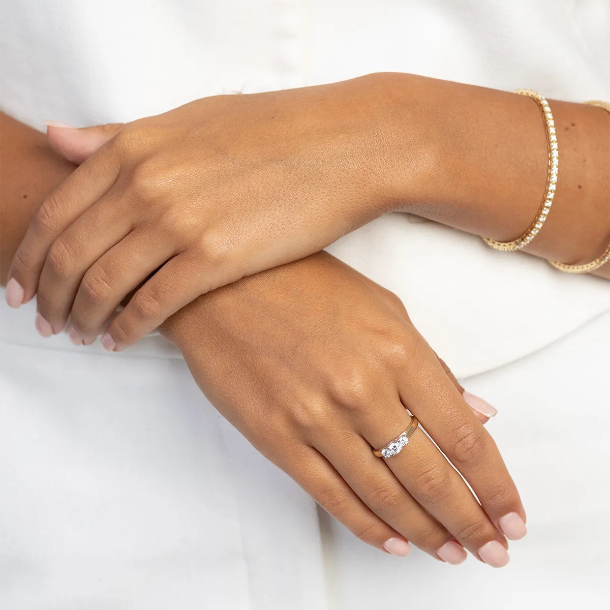 Zlatý prsten s laboratorně pěstovanými diamanty Ručně vyráběný v tradiční šperkařské dílně Gremari, tento zlatý prsten s 0,25ct laboratorním diamantem a dvěma postranními laboratorně pěstovanými diamanty o celkové hmotnosti 0,24ct představuje nadčasovou krásu a mistrovské řemeslo. Laboratorně pěstované diamanty jsou vytvářeny v přesně kontrolovaných podmínkách, které věrně napodobují přirozený proces tvorby diamantů hluboko v Zemi. Jsou to skutečné, čisté krystaly uhlíku se stejnou strukturou jako ty, které vznikají miliony let. Tyto diamanty mají identické optické a chemické vlastnosti, protože jsou vyrobeny ze stejného materiálu. Rozdíl? Jsou vytvořeny rychleji, bez nutnosti těžby a s ohledem na budoucnost naší planety. Osazeno v 14K zlatě s puncem 585, drahokamy kombinují eleganci, jemnost a odolnost. Prsten je k dispozici ve třech barevných variantách: žluté zlato, bílé zlato a růžové zlato – jednoduše si vyberte preferovanou variantu výše. Zlatý prsten je ideální volbou pro zásnuby, symbolizující lásku, oddanost a věčné pouto. Také je to nádherný a elegantní dárek k výročí, narozeninám, Vánocům a dalším významným příležitostem.