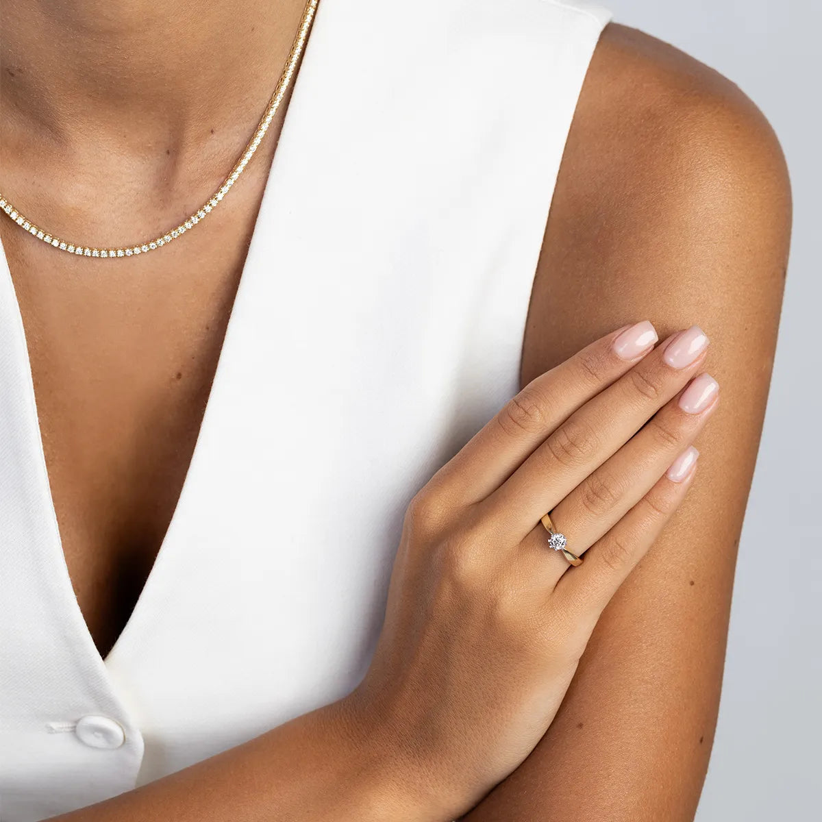 Klasický zlatý zásnubní prsten s laboratorně pěstovaným diamantem