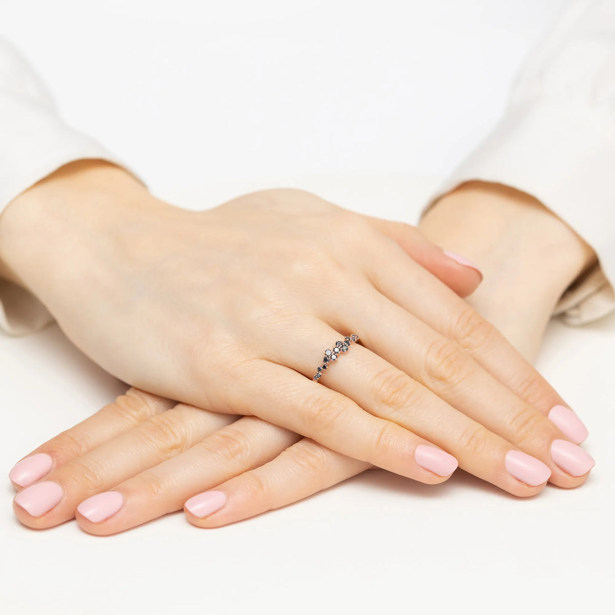 Ruční výroba v tradiční šperkařské dílně Gremari, tento prsten ze 14K zlata osazený 15 černými diamanty s celkovou hmotností 0,326ct, představuje nadčasovou krásu a mistrovské řemeslo.