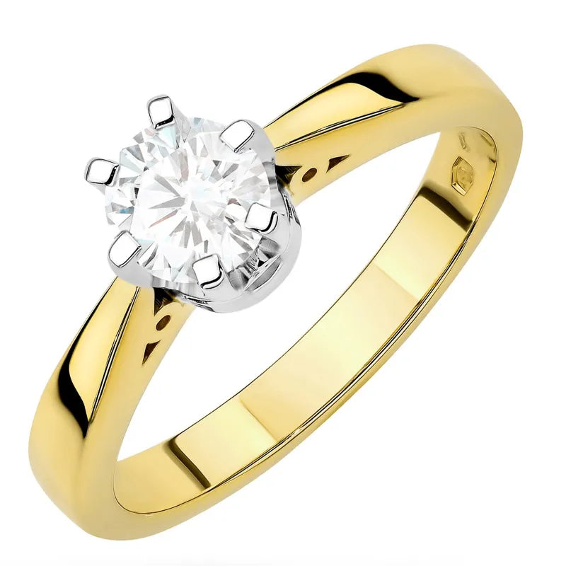 Klasický zlatý zásnubní prsten s laboratorně pěstovaným diamantem
